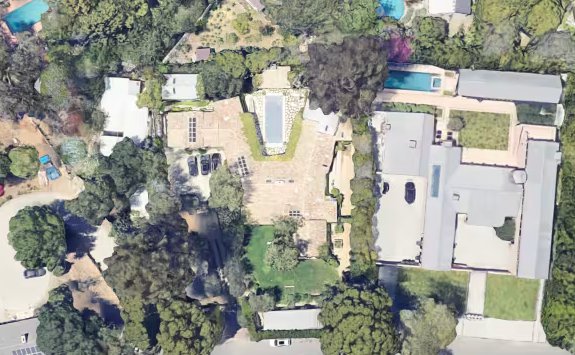 Дом был построен калифорнийским архитектором Клиффом Мэем в 1941 году. В нем пять спален, шесть ванных комнат, кабинет с камином, гостиная, кухня, также здесь есть гардеробная и медиа-комната. На территории поместья есть спа-центр с бассейном, конюшня, спортивная площадка и двухэтажный гостевой дом. На участке выполнен ландшафтный дизайн.