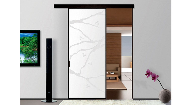Принцип открытия-закрытия дверей схож с движением штор вдоль окна. Полотно навешивается на потолок или стену над дверным проемом. Скольжение двери происходит с помощью рельсового механизма. Вся эта система закрывается декоративным коробом, который становится важным элементом планировки комнаты.
