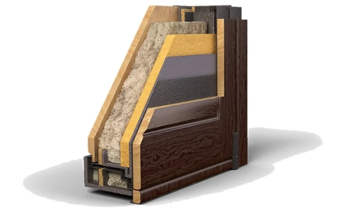 Дверное полотно остается сухим и тёплым с внутренней стороны, даже если на улице минус 30–40 °C.