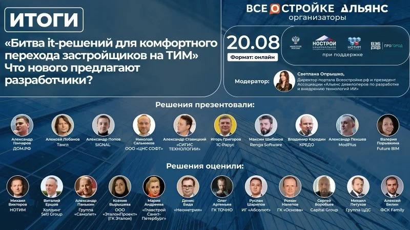 По итогам «Битвы it-решений для комфортного перехода застройщиков на ТИМ» жюри присудило первое место решению Цифровой контроль строительства ДОМ.РФ. Об этом «Стройгазете» сообщили организаторы ИТ-битвы — портал Всеостройке.рф, уточнив, что в формате пятиминутных презентаций разработчики представили свои ИТ-продукты, а ТОПы крупнейших застройщиков выбрали лучшие из них.