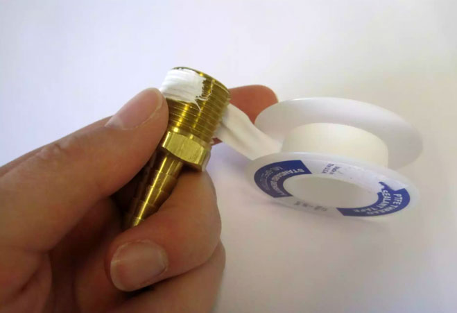 Ленту наматывают на внешнюю резьбу фитинга. При ремонте сантехники старое соединение необходимо очистить от ржавчины, грязи, а затем обезжирить поверхность растворителем. Намотку производят только после высыхания. Основное требование: фум ленту следует довольно сильно натягивать, чтобы она заполняла бороздки и плотно облегала резьбу.