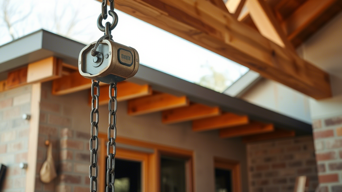 При использовании цепной тали удается существенно упростить процесс установки стропил. Закрепив механизм на временной опорной конструкции, застройщик получает возможность поднять заранее собранную стропильную ферму и точно позиционировать ее на несущих стенах. Это позволяет обойтись минимальным количеством помощников и снижает риск травматизма, связанный с подъемом тяжелых элементов вручную.