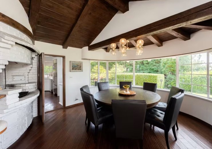 Площадь особняка — более 250 «квадратов». Особняк находится в элитном районе Бел-Эйр. В доме сохранился оригинальный интерьер, здесь есть потолки с деревянными балками, уютные камины, а центре дома оборудован круглый бар. Снаружи есть бассейн и несколько зон для отдыха.