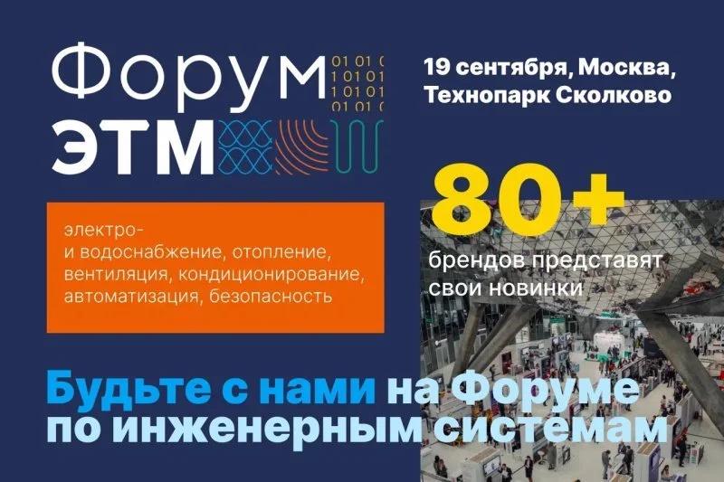 Форум ЭТМ объединит 80+ брендов на одной площадке 19 сентября в технопарке «Сколково» и станет масштабным отраслевым мероприятием по инженерным системам и электротехнике этого года.
