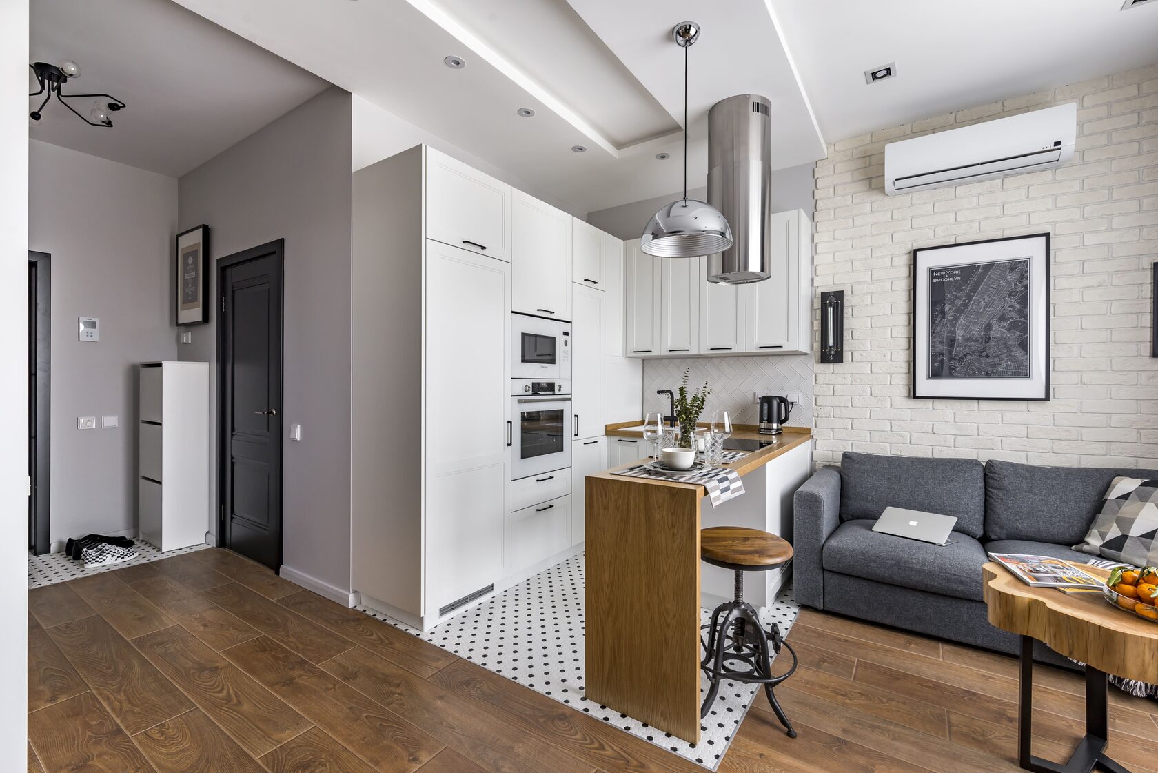 - Гибкость дизайна: В квартире-студии легче экспериментировать с интерьером. Можно свободно перемещать мебель и зонировать пространство с помощью различных декоративных элементов.