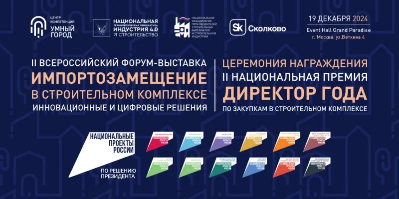 Церемония награждения II Национальной Премии «Директор по закупкам года» состоится 19 декабря 2024 года на II Всероссийском Форуме-выставке «Импортозамещение в строительном комплексе». Об этом «Стройгазете» рассказали представители мероприятия.