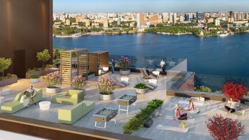 Жилой комплекс общей площадью 45,7 тыс. кв. метров рассчитан на 498 квартир. Проектом предусмотрены приватный двор-парк, двухуровневый подземный паркинг, кладовые, лаунж-зона на крыше и прямой выход к благоустроенной набережной. Архитектуру комплекса разработало бюро ATRIUM. Завершить строительство объекта запланировано на I квартал 2028 года.