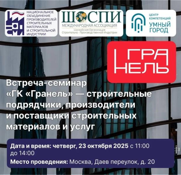 Ассоциация НОПСМ совместно с Международной Ассоциацией ШОСПИ и Центром компетенций «Умный город» продолжает серию прямых встреч-семинаров с крупнейшими девелоперами России. Следующая встреча состоится в четверг, 23 октября 2025 года — гостем станет Группа компаний «ГРАНЕЛЬ», один из лидеров российского рынка жилищного строительства. Об этом «Стройгазете» рассказали представители мероприятия.