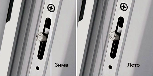 А вот в отличие от зимней регулировки, летняя отличается тем, что нужно ослабить притяжение уплотнителя, поскольку в это время года нет нужды сохранять тепло так, как в холода. Процесс регулировки происходит таким же способом, единственное, что черточка на ролике должна показывать не на помещение, а в сторону улицы.
