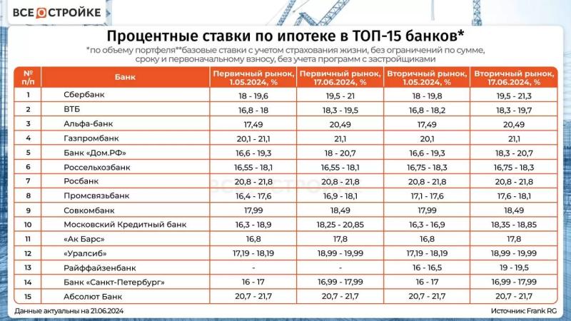 В начале лета 12 из ТОП-15 кредитных организаций повысили ставки по рыночной ипотеке.