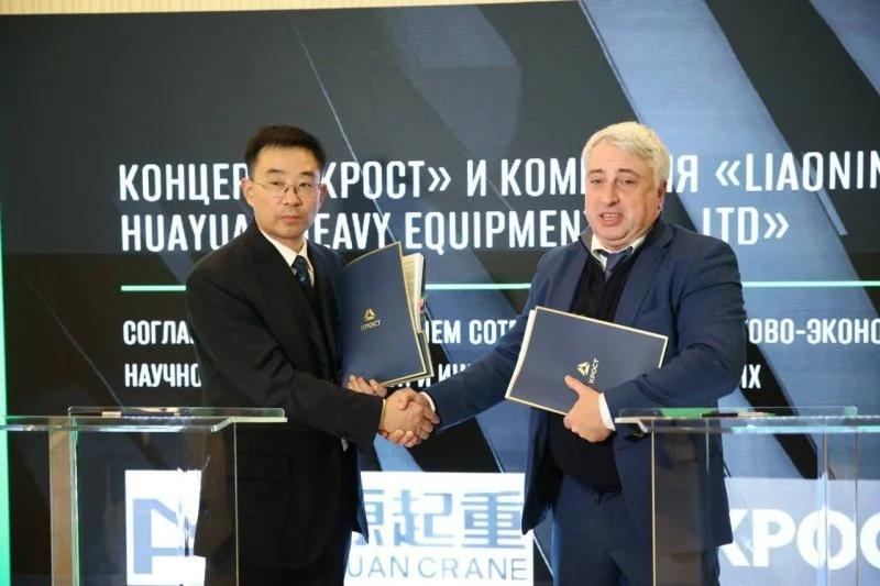 Концерн «КРОСТ» подписал договор и соглашение о намерениях о двустороннем сотрудничестве в торгово-экономической, научно-технологической и иннвестиционных областях с компанией Liaoning Huayuan Heavy Equipment Co., Ltd. Об этом «Стройгазете» сообщили в пресс-службе российской компании, уточнив, что подписание состоялось на Форуме Light industrial 6.0, который проходил в кластере «Ломоносов» в Москве.