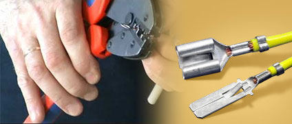 - Далее при помощи специальных пресс-клещей наконечник обжимается (в случае отсутствия этого инструмента обжим можно произвести с помощью обыкновенных пассатижей).