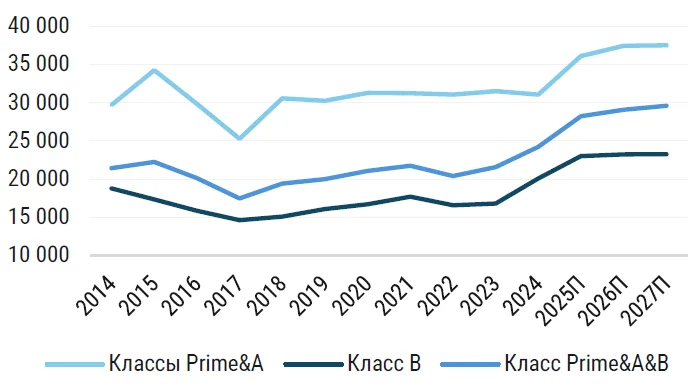 «В течение длительного времени рост арендных ставок на качественные офисы отставал от уровня инфляции. В 2022 году фиксировалось снижение ставок на 6%, и лишь начиная с 2023 года рынок перешел к активной положительной динамике. За 2024 год и первую половину 2025 года реализовалась часть отложенного роста ставок», – пояснила Наталья Никитина, международный партнер, руководитель департамента офисной недвижимости CMWP.