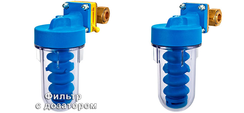 - фильтры с дозаторами распределяют водный поток на две части, одна часть проходит очистку полифосфатом и возвращается в общий поток.