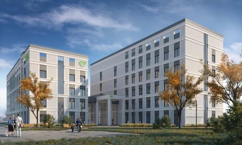 В компании рассказали, что здание поликлиники общей площадью 9,4 тыс. кв. метров будет состоять из двух корпусов: пятиэтажной взрослой поликлиники на 500 посещений в смену и детской поликлиники высотой в четыре этажа на 250 посещений. Прямоугольные корпуса детской и взрослой поликлиник будут полностью обособлены друг от друга, их объединит только двухсветный вестибюль на уровне первого этажа.