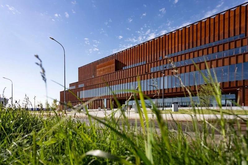 Строительство здания началось осенью 2021 года, к апрелю 2023 года был завершен несущий монолит, на который потребовалось 8,2 тыс. куб. метров бетона и 983 тонны арматуры. Фасад здания выполнен из кортеновской стали и стекла общей площадью почти 8 тыс. кв. метров. Это первый подобный опыт в Калининграде. Архитектурный замысел воплотил в себе прямоугольное ступенчатое здание габаритами 126×29 метров.