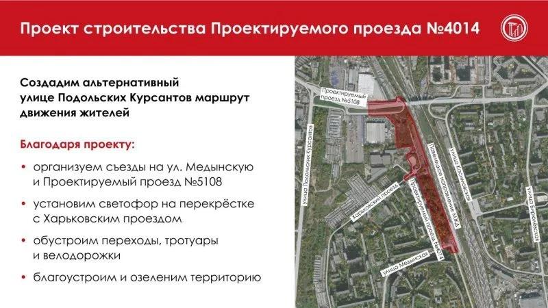 «Проектируемый проезд №4014 станет продолжением Булатниковского проезда и пройдет вдоль путей Павелецкого направления МЖД. Он соединит ж/д станцию Бирюлево-Товарная с жилыми домами и разгрузит улицу Подольских Курсантов», — сообщил Сергей Собянин в своем Telegram-канале.