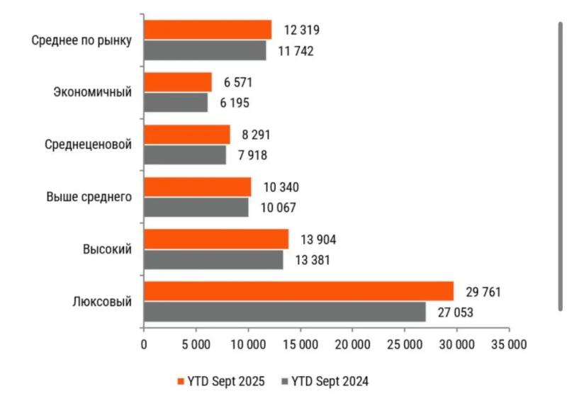 Доходность на номер за девять месяцев 2025 года для всего рынка качественных отелей составила 9,3 тыс. рублей, обеспечив прирост всего на 3,7% по сравнению с аналогичным периодом 2024 года. При этом максимальный прирост доходности на номер показали отели среднеценового сегмента — 5,3% по сравнению с аналогичным периодом предыдущего года.