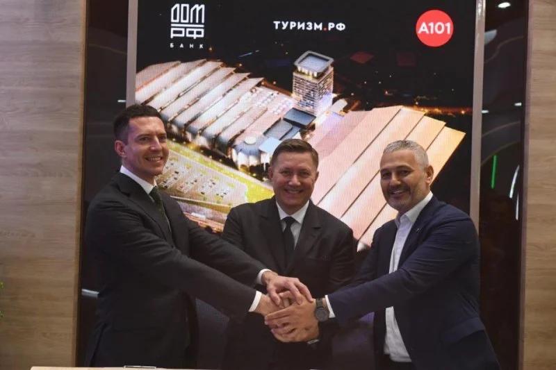 Группа компаний «А101» «Банк ДОМ.РФ», Корпорация Туризм.РФ и Группа компаний «А101» в ходе Петербургского международного экономического форума подписали соглашение о взаимодействии и сотрудничестве по вопросам строительства крупнейшего в России аквакурорта в спортивно-туристическом кластере «Прокшино». Подписи под документами поставили председатель правления «Банка ДОМ.РФ» Артем Федорко, генеральный директор Корпорации Туризм.РФ Сергей Суханов и генеральный директор ГК «А101» Игнатий Данилиди.