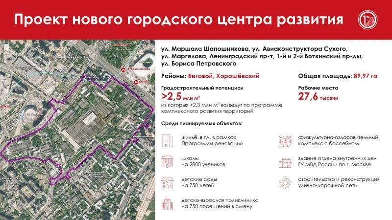 «Реорганизуем территорию площадью почти 90 га в районах Беговой и Хорошевский. К работе привлекаем ведущих архитекторов и проектировщиков. Вместо устаревших производственных, коммунальных и складских объектов возведем современные кварталы. Тем самым создадим 27,6 тыс. новых рабочих мест и комфортные условия для проживания 16,3 тыс. человек», – написал Сергей Собянин в своем Telegram-канале.
